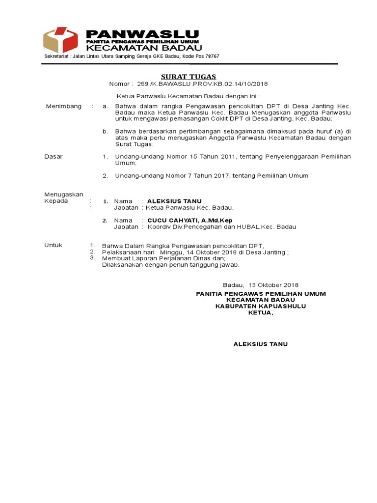 15 contoh surat tugas resmi yang baik dan paling lengkap salah satu jenis surat yang sangat sering digunakan oleh perusahaan maupun instansi tertentu adalah surat tugas. 15 contoh surat pengunduran diri yang benar dan beretika melihat pentingnya surat pengantar tugas dalam mengiringi koordinasi antar instansi tentu beberapa contoh yang akan diberikan bisa membantu kinerja anda dalam membuat surat tugas yang resmi baik dan benar. Contoh surat tugas surat tugas merupakan salah satu contoh surat resmi yang dikeluarkan oleh instansi atau perusahaan kepada pegawai atau karyawannya untuk melaksanakan suatu tugas tertentu.