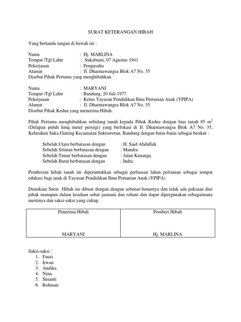 Semoga bermanfaat dan bisa menambah wawasan anda salam. Hibah tanah tanah wakaf tanah warisan dan lain lain tanah merupakan aset yang sangat berharga yang dimiliki oleh seseorang bukan hanya menyangkut nilai pasar yang melekat terhadapnya namun manfaat manfaat serta hal hal plus yang terkandung di dalamnya yang mungkin bernilai lebih dari nilai tahah itu sendiri. Namun perlu diketahui kalau penggunaan surat memang tidak bisa ditinggalkan karena ada banyak hal dan urusan yang masih membutuhkan surat. Thursday 16th july 2020. Contoh surat hibah versi tahun 2020 tiba saatnya untuk melihat bagaimana contoh penulisan surat hibah yang baik dan benar. Contoh surat hibah tanah.