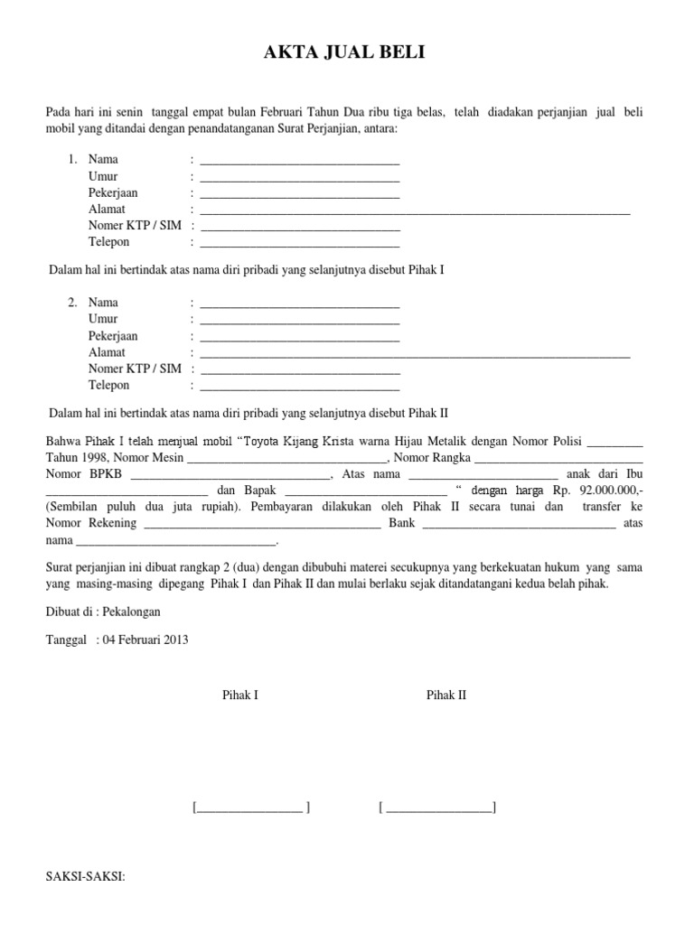 Contoh surat perjanjian jual beli mobil bekas yang resmi download gratis doc contoh surat perjanjian jual beli mobil hobi si petani. Surat jual beli mobil bagi penjual dan pembeli serta format contohnya contoh surat perjanjian pengikatan jual beli rumah sppjb. Contoh surat perjanjian jual beli surat perjanjian juga sangatlah penting dalam sebuah transaksi jual belinahapa itu surat perjanjian jual beli. Download contoh surat perjanjian jual beli mobil doc itu tadi penjelasan mengenai contoh surat perjanjian jual beli mobil yang dapat kami berikan pada kesempatan kali ini. Saya adalah pembawa sepeda siang hari calon aktor di malam hari dan ini adalah situs web saya. Contoh surat jual beli mobil setelah anda sudah mengetahui fungsi surat perjanjian jual beli mobil ini dan selanjutnya kita membahas cara membuat surat perjanjian jual beli mobil bekas.