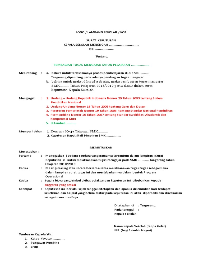 Contoh surat keputusan mengajar. The collection that comprising chosen picture and the best amongst others. Kumpulan gambar contoh surat keputusan beban mengajar yang benar 2019. Dengan isi yang lengkap dan bertujuan jelas pasti suatu surat keputusan akan terlaksana dengan baik. Sedikit tips dari kami karena surat keterangan aktif mengajar memuat profil sekolah kepada pihak lain. Contoh surat keputusan pengangkatan karyawan tetap. Surat keputusan diperlukan bilamana seorang pemimpin atau atasan membuat keputusan di suatu pihak atau kelompok.