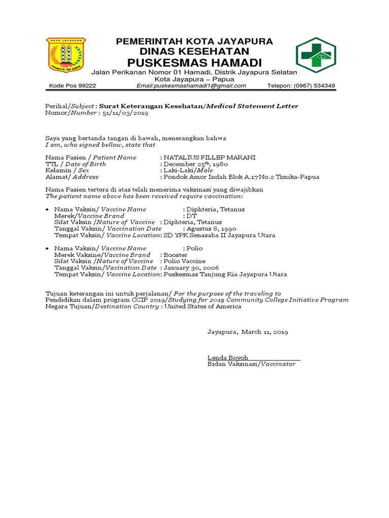 Contoh surat kesehatan dari puskesmas. This is article about contoh surat keterangan sakit dari puskesmas untuk pelajar with description. Surat ini merupakan contoh dari surat resmi dimana penulisan dan penggunaan bahasa yang harus sesuai dengan ejaan yang disempurnakan. Itulah beberapa contoh surat keterangan sehat dari puskesmas untuk berbagai keperluan. Surat keterangan sehat biasa diminta untuk berbagai urusan administrasi. 15 contoh surat dokter untuk berbagai keperluan dalam berbagai hal dan urusan surat keterangan dari dokter sangatlah diperlukan. 15 contoh surat keterangan sehat untuk berbagai keperluan jika anda pernah melamar pekerjaan atau sudah menikah anda tentu pernah mengurus jenis surat ini.