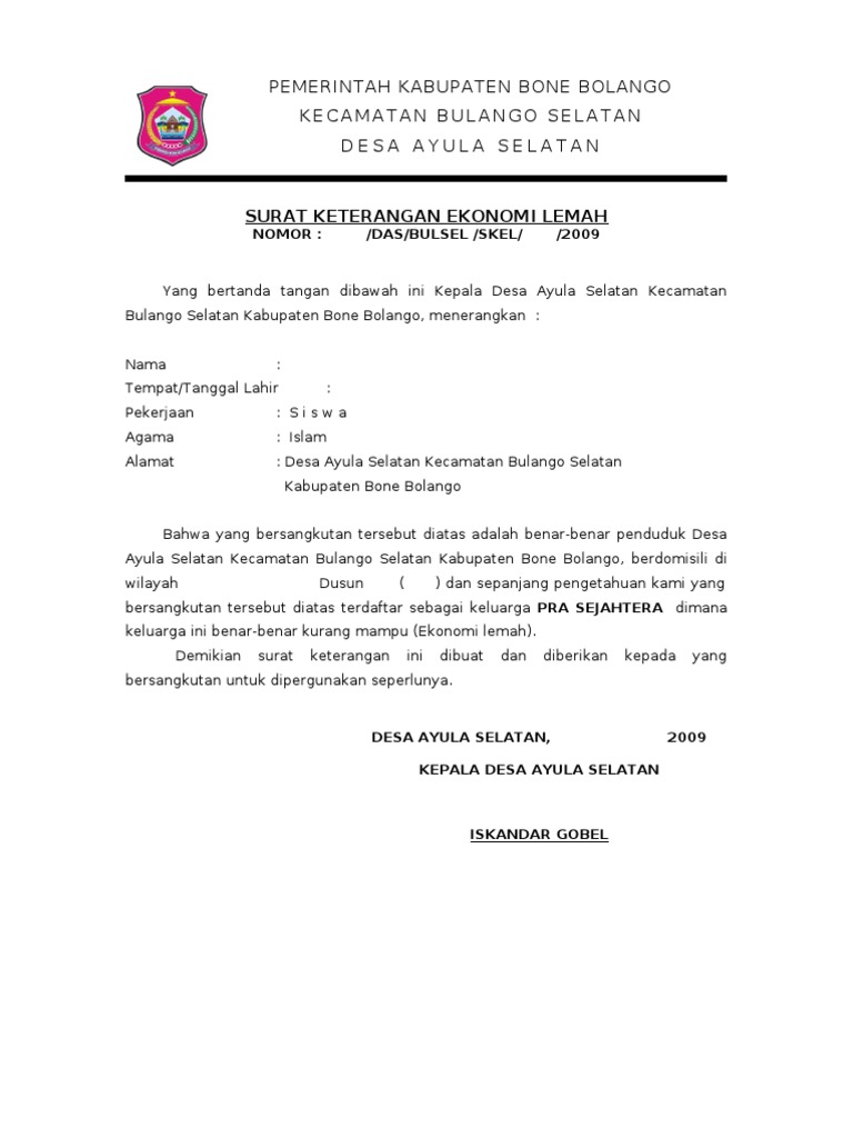 Surat keterangan tidak mampu adalah sebuah surat yang mana dibuat dan dikeluarkan oleh pihak yang berwenang ketua rt ketua rw kepala dusun kepada desa dan lainnya untuk dapat menerangkan bahwa seseorang yang telah disebutkan dalam surat tersebut merupakan salah atu warga yang tidak mampu yang berdomisili di daerah tertentu. Surat keterangan tidak mampu berikut ini anda bisa lansung copypaste contoh surat keterangan miskin tidak mampu dari kepala desa ini untuk kelengkapan.