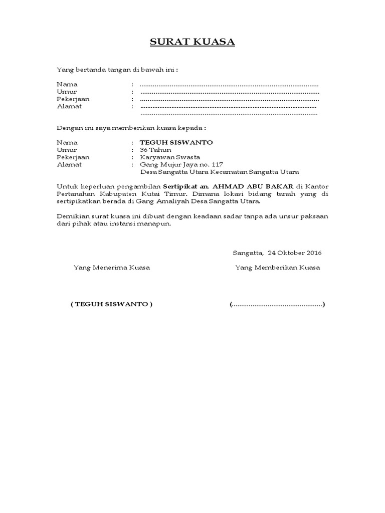 Contoh surat kuasa sertifikat tanah. Contoh surat pernyataan penyerahan sertifikat tanah sertifikat adalah surat tanda bukti untuk hak atas tanah hak pengelolaan tanah wakaf hak milik atas satuan rumah susun dan hak tanggungan yang masing masing sudah dibukukan dalam buku tanah yang bersangkutan. Contoh surat kuasa no. Jika anda tidak memiliki kesempatan untuk merawat dan menjaga tanah tersebut maka anda bisa memberikan kuasa kepada orang lain. Jika kita memiliki harta benda maka sangat penting bagi kita untuk menjaga dan merawat harta tersebut seperti harta tanah contohnya. Untuk penggunaan pemakaian sertifikat tanah rumah sebagai jaminan peminjaman uang di bank perkreditan rakyat bpr. 15 contoh surat kuasa tanah untuk berbagai keperluan setiap harta benda tentu memiliki harga tersendiri yang harus kita jaga.
