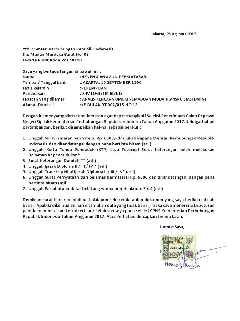 Kedua instansi itu juga menentukan format surat lamaran dan surat pernyataan yang harus diserahkan oleh pelamar. Contoh surat lamaran cpns 2019 di 8 kementerian di kementerian pertanian kementan kementerian luar negeri kemenlu hingga kementerian perhubungan. Cpns 2019 pendaftaran cpns kemenhub 2019 berikut kriteria pelamar dan contoh surat lamaran kementerian perhubungan membuka formasi untuk seleksi cpns 2019. Surat lamaran cpns 2018 kemenhub pdf. Sebagian besar instansi menyediakan format surat lamaran yang bisa diunduh atau di download dan diisi para pelamarada yang menyertakan dalam tautan terpisah ada yang melampirkannya bersama. Contoh surat lamaran cpns kementerian perhubungan 2019.