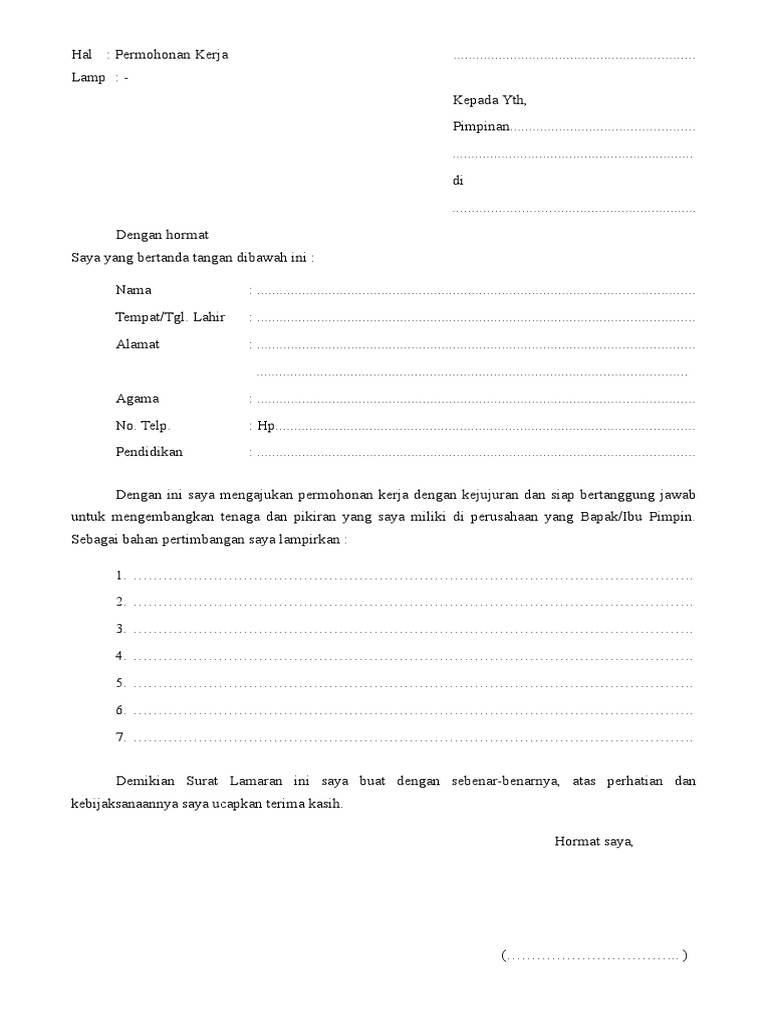 Contoh surat lamaran kerja kosong. Karena setiap orang pada akhirnya memang akan membutuhkan sebuah pekerjaan untuk memperoleh penghasilan guna mencukupi kebutuhan sehari harinya. Ini sangat menguntungkan karena selain mengurangi penggunaan kertas juga membuat para pelamar lebih mudah menyerahkan surat lamaran kerjanya. Apalagi perusahaan yang kamu lamar adalah perusahaan besar ini menunjukkan etika kamu. Contoh surat lamaran kerja melamar sebuah pekerjaan merupakan suatu hal yang umum terjadi pada kehidupan kita sehari hari. Download contoh surat lamaran kerja internasional word. Academiaedu is a platform for academics to share research papers.