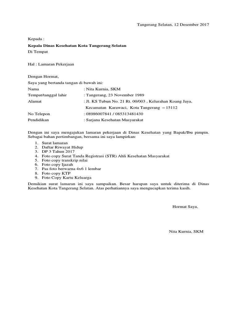 Contoh surat lamaran kerja perawat di dinas kesehatan. Contoh resensi buku novel fiksi non fiksi lengkap singkat. Baik itu jurusan keperawatan jurusan kebidanan sampai dengan jurusan kedokteran. Jika dibutuhkan juga silahkan lihat contoh surat lamaran kerja magangpkl barangkali juga akan berguna untuk anda. 1 surat lamaran dinkes aktif kuliah berhenti kuliah izin sakit dan lain lan masa masa kuliah adalah masa yang paling bahagia seperti itulah kebanyakan. Informasi yang anda cari adalah contoh surat lamaran kerja perawat di dinas kesehatandibawah ini telah kami sajikan informasi lowongan kerja lulusan sma smk d3 s1 s2 semua jurusan lowongan bank bumn cpns dan swasta lainnya berdasarkan keterkaitan artikel ataupun keterkaitan iklan yang benar benar sesuai dengan kata kunci. Terima kasih sudah berkunjung ke blog contoh surat lamaran kerja terbaru 2016 ini dan semoga lamaran kerja anda diterima di instansi pemerintah daerah tempat anda melamar.