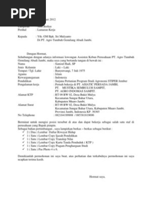 Surat lamaran kerja sangat dibutuhkan oleh semua kalangan guna melamar pekerjaan baru baik untuk kamu yang baru lulus kuliah pindah kerja cari suasana baru maupun fresh graduate. Contoh surat lamaran kerja di pt kelapa sawit backup gambar surat lamaran kerja. Ada banyak pilihan pekerjaan yang bisa anda jadikan pilihan. 0 lowongan kerja contoh surat lamaran pabrik kelapa sawit rekrutmen contoh surat lamaran pabrik kelapa sawit loker contoh surat lamaran pabrik kelapa sawit rekruitmen contoh surat lamaran pabrik kelapa sawit daftar lowongan pekerjaan contoh surat lamaran pabrik kelapa sawit by lowongan kerja 15. Contoh surat lamaran kerja ke perusahaan kelapa sawit have a graphic associated with the othercontoh surat lamaran kerja ke perusahaan kelapa sawit in addition it will include a picture of a sort that may be seen in the gallery of contoh surat lamaran kerja ke perusahaan kelapa sawit. Anda harus bersaing dengan para pencari kerja lainnya untuk mendapatkan pekerjaan.