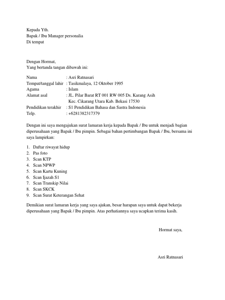 Contoh surat lamaran kerja spg yang baik surat lamaran kerja merupakan sebuah surat yang di dalamnya berisikan permohonan agar bisa bekerja dan dengan di lengkapi berbagai macam persyaratan tertentu sesuai apa yang di minta oleh perusahaan yang membuka lowongan pekerjaan seperti skck surat kuning dan lainnya harus di lengkapi dengan sangat lengkap sekali. Pimpinan pt ramayana lestari sentosa tbk jakarta.