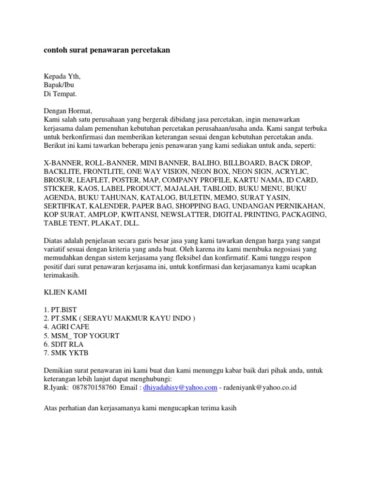 Contoh Surat Penawaran Resmi Brainly Co Id