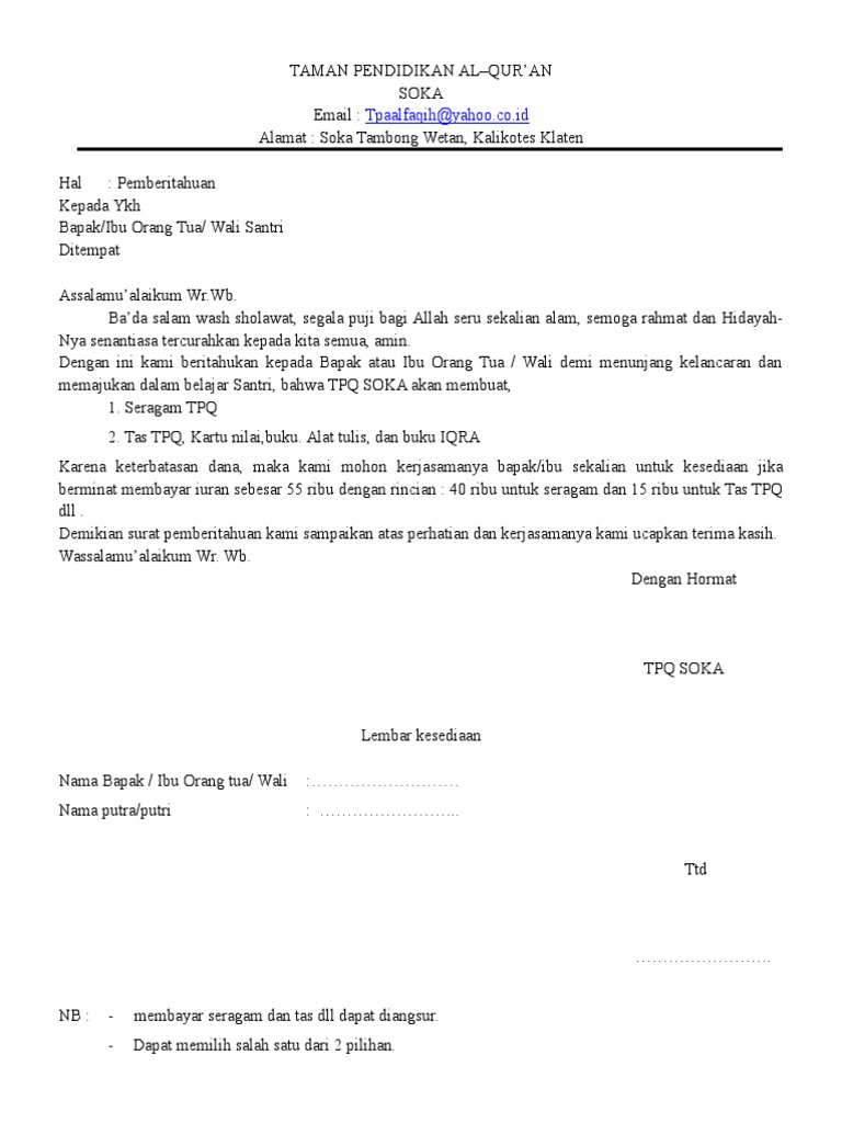 1 lembar di blok qq 0215 h a l. Kerja bakti perumahan asri jaya dengan hormat dari hasil rapat pengurus lingkungan perumahan asri jaya yang di antaranya membahas tentang diperlukannya perawatan lingkungan dan. Jika anda memiliki sebuah perjuangan konveksi atau jahitan tentu ingin mendapatkan order maksimal diantaranya yakni pada ketika menjelang kenaikan kelas. Adapun pembayaran sekolah tersebut diantaranya yaitu spp iuran siswa dan masih banyak lagi lainnya. Contoh surat pemberitahuan pembayaran sekolah. Isi surat pemberitahuan sekolah ini sangat beragam salah satunya perihal pembayaran sekolah.