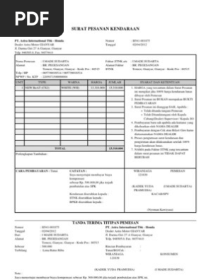 Contoh surat perjanjian sewa rental mobil berikut ini adalah 2 contoh surat perjanjian penyewaan kendaraan khususnya mobil. Surat pesanan adalah surat yang dikeluarkan oleh suatu perusahaan atau instansi tertentu yang tujuannya untuk memesan suatu produk atau barang kepada mitra kerja samanya. Contoh surat penawaran menjadi seorang pengusaha atau bisnisman pasti akan mengenal salah satu jenis surat resmi ini. Astra international tbk honda dealer astra motor gianyar jl. Contoh surat po perusahaan pemesanan unit kendaraan 2018 di atas yang mungkin bisa dijadikan referensi bagi anda untuk membuat contoh surat po perusahaan pemesanan unit kendaraan 2018terimakasih sudah membaca artikel contoh surat po perusahaan pemesanan unit kendaraan 2018 semoga bermamfaat bagi para pembaca. Laundry kebersihan linen pemesanan.