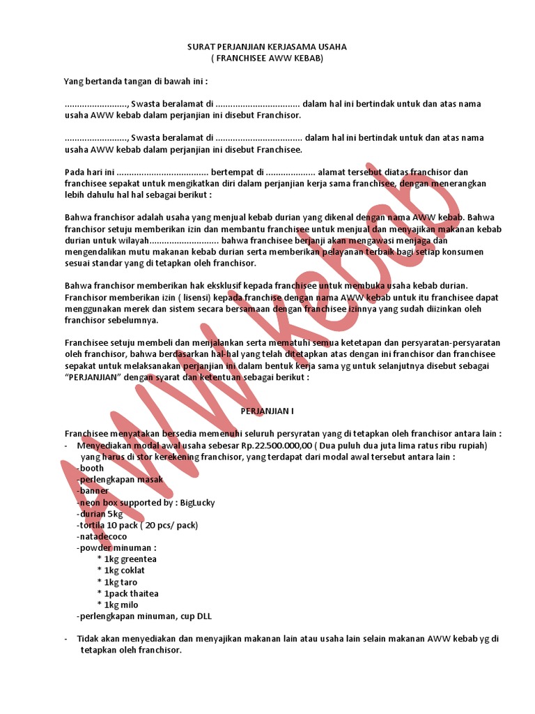 Facebook twitter newer post older post search here. Kumpulan contoh contoh surat lamaran kerja kontrak jual beli perjanjian kerjasama dan sebagainya. Contoh surat perjanjian franchise kebab hendy setiono. Yang paling ramai pengunjungnya. Dalam contoh surat perjanjian waralaba kebab turki gawe cv telah memilihkan tema atau template yang terbaik untuk dijadikan inspirasi ide ataupun acuan dalam penulisan surat anda. Bahwa franchisor adalah restoran yang menyajikan makanan siap saji fast food yang.
