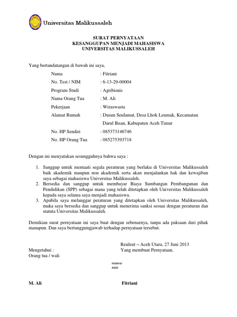 Bagi penerima surat surat pernyataan bisa menjadi sebuah bukti tertulis yang sah di mata hukum bila dibubui meterai untuk meminta sebuah pertanggungjawaban apabila pihak yang ada di dalam surat tidak menepati apa yang telah menjadi kesanggupannya. Surat pernyataan memiliki fungsi dan manfaat. Surat proposal tugas atau keterangan dan lain lain ini hanyalah panduan dan contoh semata semua isi dan inti dari surat tersebut nanti silahkan sesuaikan dengan kebutuhan anda kami tidak bertanggung jawab apabila nanti ada permasalahan yang muncul di karenakan anda mengambil contoh dari blog ini. Melalui kesempatan yang berbahagia ini kembali kami berbagi sebuah artikel tentang surat perjanjian program beasiswa unggulan yang bisa anda dapatkan dengan mudah karena kami sediakan dalam bentuk file word jadi anda tinggal download dan edit saja sesuai dengan kebutuhan atau sesuai dengan biodata anda. Contoh surat perjanjian dalam dunia bisnis pasti tidak jauh dengan yang namanya surat perjanjian. Entah itu surat perjanjian tentang jual beli tanah sewa menyewa meminjam uang dan lain lain.