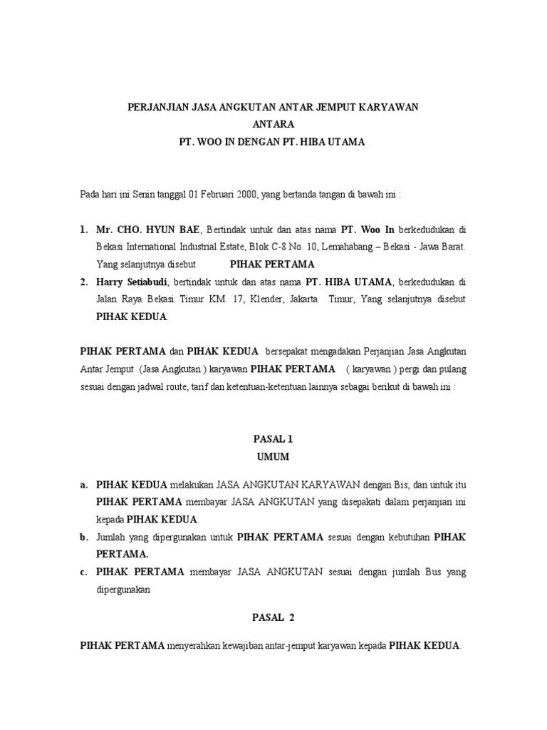 Namun ada banyak lagi surat perjanjian kerja sama yang dapat anda buat sesuai dengan kebutuhan namun agar tidak membahayakan anda sebaiknya anda memenuhi beberapa tips ini. Selalu digunakan dalam masyarakat sebagai contoh adalah dalah hukum perjanjian sewa menyewa. Contoh surat perjanjian sewa menyewa barang archives gawe cv begitulah informasi yang bisa kami uraikan mengenai contoh surat perjanjian sewa bus pariwisata. Operasional bus wisata di dalam suatu hubungan perjanjian sewa menyewa bus wisata meninggalkan banyak masalah seputar penerapan dan akibat hukum dari perjanjian sewa menyewa tersebut terutama menyangkut tanggungjawab para pihak terhadap tindakan wanprestasi yang dilakukan. Contoh surat perjanjian sewa rumah kontrakan pdf doc contoh surat perjanjian sewa gudang yang baik dan benar demikian informasi yang dapat kami bagikan mengenai contoh proposal pengajuan sewa tempat usaha doc. Perjajian sewa menyewa bus pada pt.