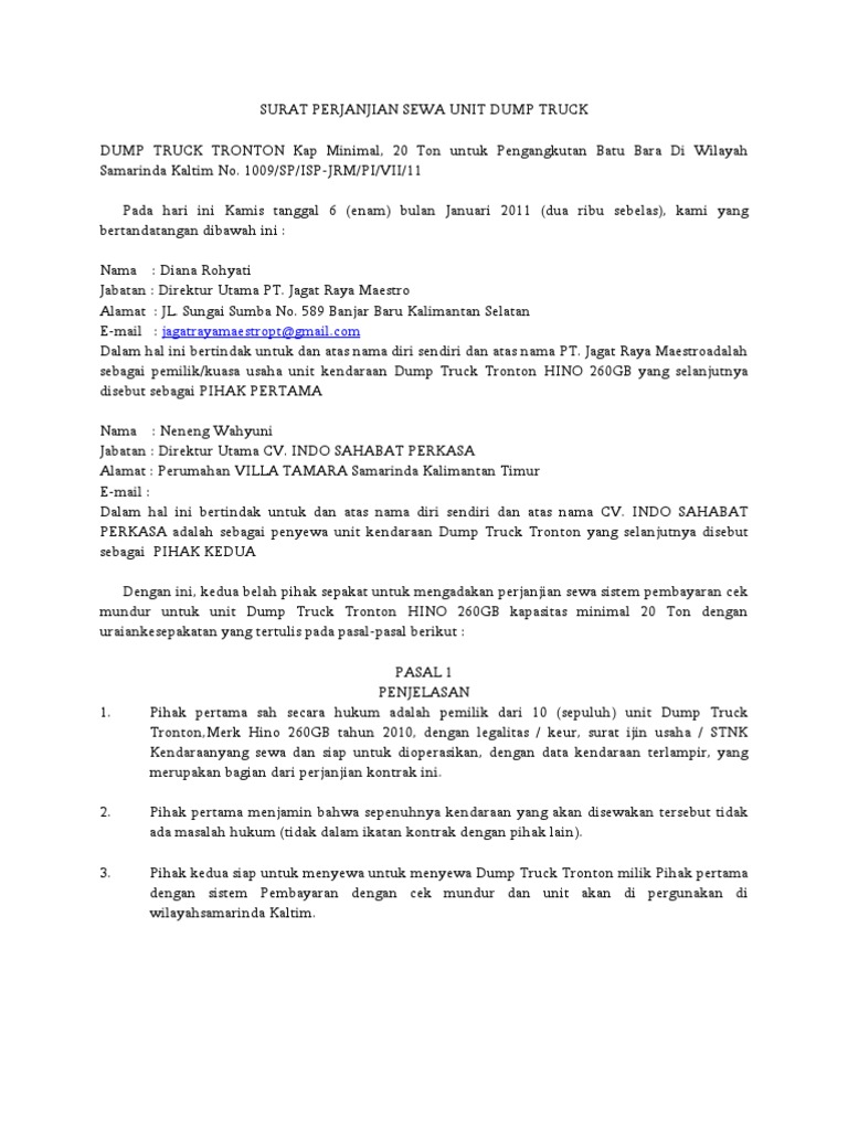 Contoh surat perjanjian sewa mobil bulanan. Tunggul barita hamonangan simarmata se pekerjaan. Seperti surat perjanjian lainnya tentu saja terdapat beberapa parameter yang perlu diperhatikan ketika menyusun surat perjanjian sewa mobil yang baik dan benar ini. Jadi surat perjanjian sewa menyewa ini tidak hanya untuk rental mobil harian atau bulanan saja. Membuat surat perjanjian sewa mobil biasanya diperlukan oleh sebuah perusahaan dalam jangka waktu bulanan atau tahunan. Surat perjanjian sewa mobil bulanan. Hal ini karena perusahaan yang mempunyai tender di suatu daerah membutuhkan transportasi dan tidak ingin direpotkan dengan perawatan seperti jika membeli sendiri.
