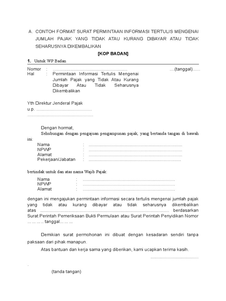Contoh surat permohonan informasi. Data dan jumlah sengketa informasi yang diterima komisi informasi. Undang undang pemberian perangsang penanaman modal uu 26 thn 1964 undang undang pemberian bantuan penghidupan orang jompo uu 4 thn 1965 contoh surat permohonan klarifikasi. Undang undang pemberian pembebasan pajak perseroanpajak pendapatan uu 27 thn 1964. Contoh surat pemberitahuan hasil rapat yang baik. Nah kali ini blog artikel tips dan contoh akan meberikan informasi menarik tentang bagaimana membuat surat permohonan yang baik melalui artikel tentang contoh surat permohonan. Contoh surat permohonan dalam kehidupan sehari hari sering kali kita dihadapkan dengan suatu situasi yang tidak dapat dikerjakan dengan sendiri dan harus memerlukan bantuan pertolongan dari orang lainagar permohonan tersebut dikabulkan maka kita harus membuat sebuah surat permohonan yang ditujukan kepada pihak yang bersangkutan.