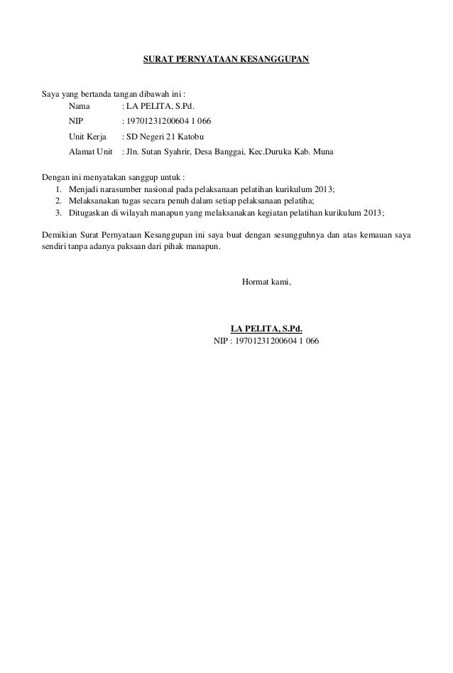 Contoh surat contoh surat pengunduran diri dalam bahasa inggris. Melaksanakan tugas secara penuh dalam setiap pelaksanaan pelatihan. Contoh surat contoh surat permohonan bantuan qurban. Ditugaskan di wilayah manapun yang melaksanakan kegiatan pelatihan kurikulum 2013. Surat pernyataan kesanggupan melaksanakan kurikulum 2013 mulai tp. Dalam penetapan kurikulum dan untuk ke absahan perlu di buatkan sk kepala sekolah tentang penetapan kurikulum.