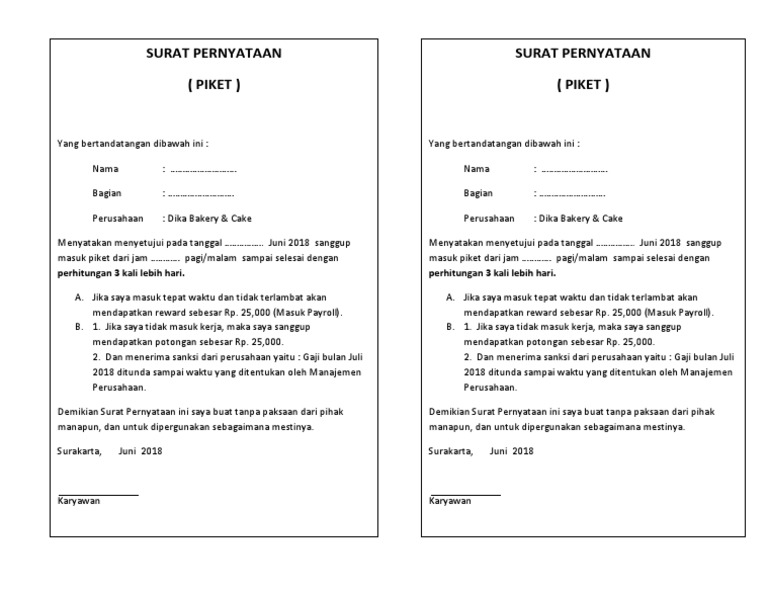 Saya berjanji akan berhati hati lagi dan tidak menghilangkan aset milik sekolah. Sebenarnya dalam penggunaannya surat pernyataan terlambat masuk kerja tidak selalu dipakai di semua perusahaan hanya perusahaan yang menerapkan aturan itu saja.