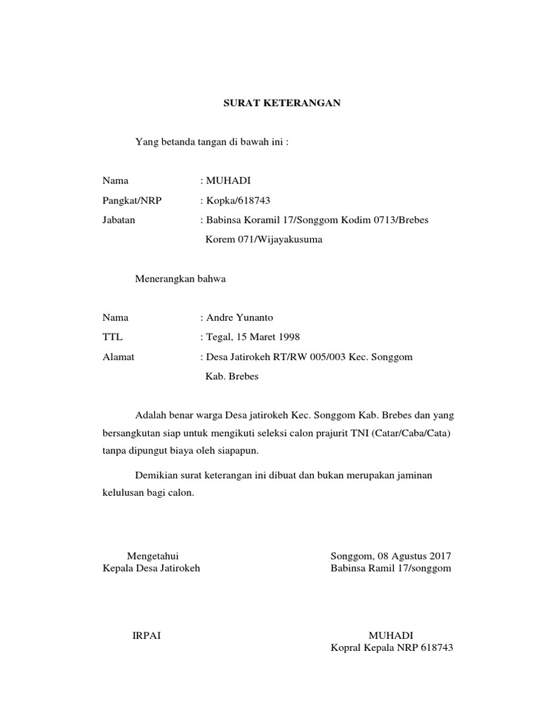 Surat Keterangan Mendaftar Tni Ad 2