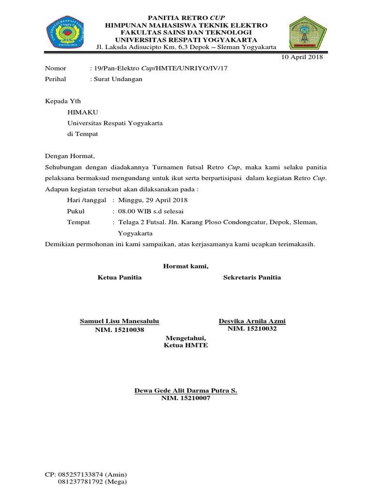 Pencinta futsal di sragen assalamualaikum wrwb sehubungan untuk menyongsong hut ri ke 67 kami mengundang dan mengharapkan keikutsertaan dalam turnamen futsal muda tama cup ii yang akan dilaksanakan pada. Proposal panitia mengupayakan identitas hidup berkeluarganah berikut ini adalah beberapa contoh surat undangan turnamen futsal dan contoh surat surat penting lainnya yang berhubungan dengan surat undangan turnamen futsalsurat undangan kejuaraan futsal smp se dki jakarta 23104 views 22077 views.