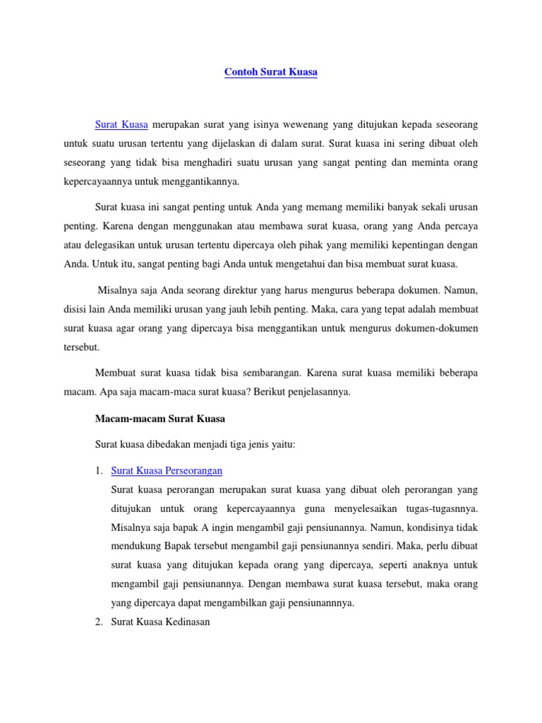 Contoh Surat Kuasa